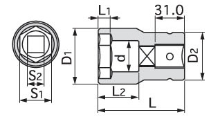 トネ/TONE 25.4mm(1”) ホイルナットコンビソケット 品番:8A-3517 |