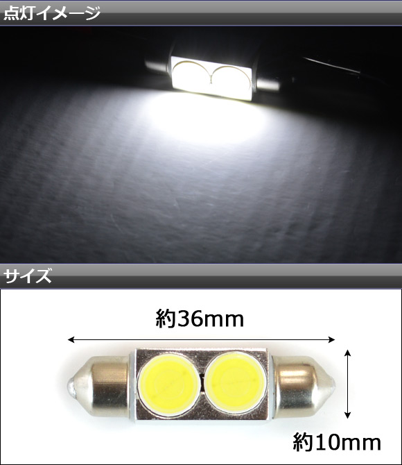 HPW LEDルームランプ ホワイト T10×36mm 2連 2W AP-TN-HPW-36M2W |