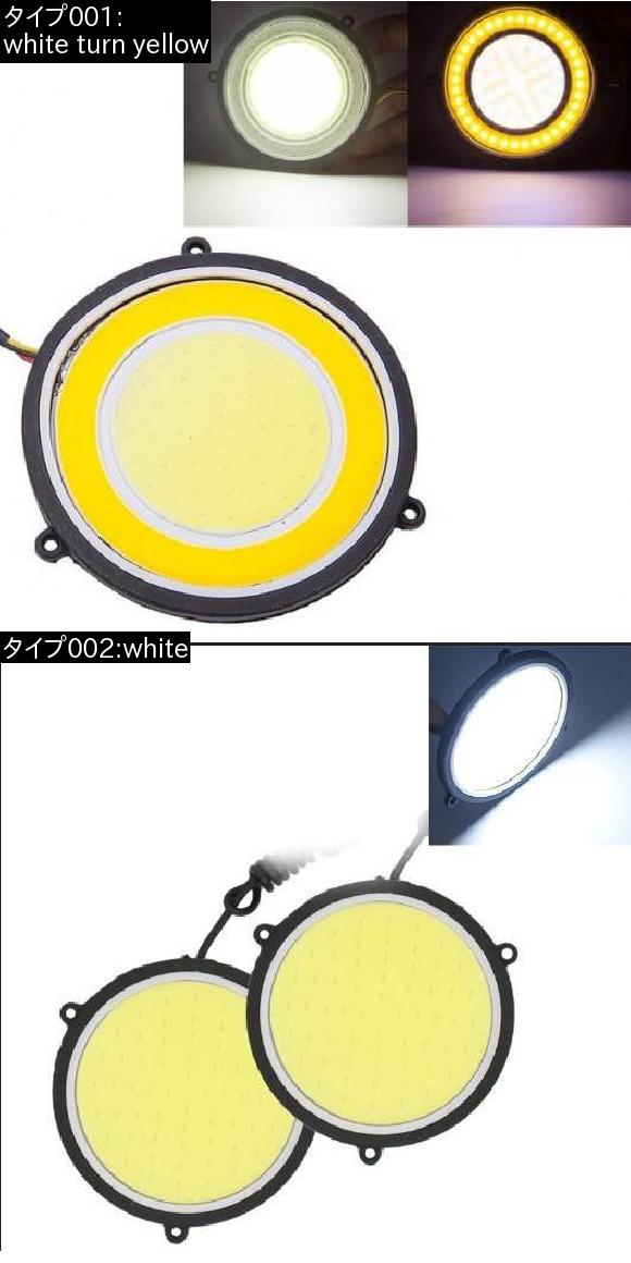 ハイパワー 2ピースセット DRL COB ラウンド 120 チップ LED ラウンド 120 チップ 30ワット 直径 70mm オートライト日中走行用 12V white turn yellow, white AL-BB-1190 AL |