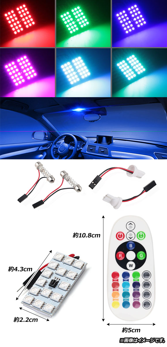 AP LEDルームランプ T10 5050 15SMD RGB マルチカラー(16色) 汎用 リモコン付き AP-RU089 |
