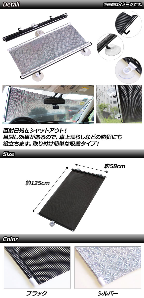 格納式サンシェード 58×125cm 吸盤タイプ 汎用 選べる2カラー AP-SD274-58CM |