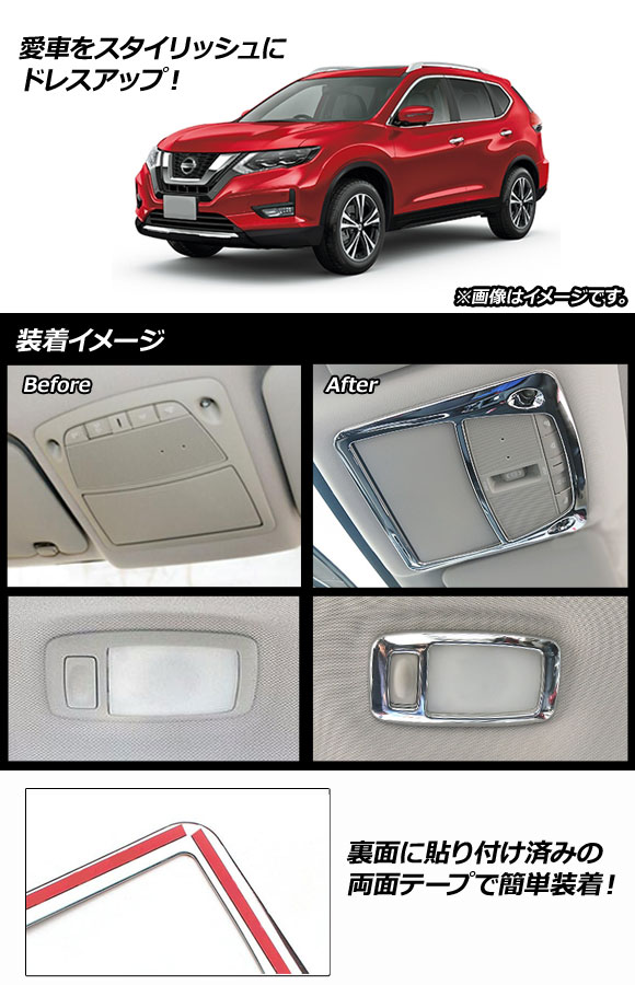 AP ルームランプガーニッシュ 鏡面シルバー ABS樹脂製 AP-IT282-3P-KSI 入数:1セット(3個) ニッサン エクストレイル T32 2013年12月〜 |