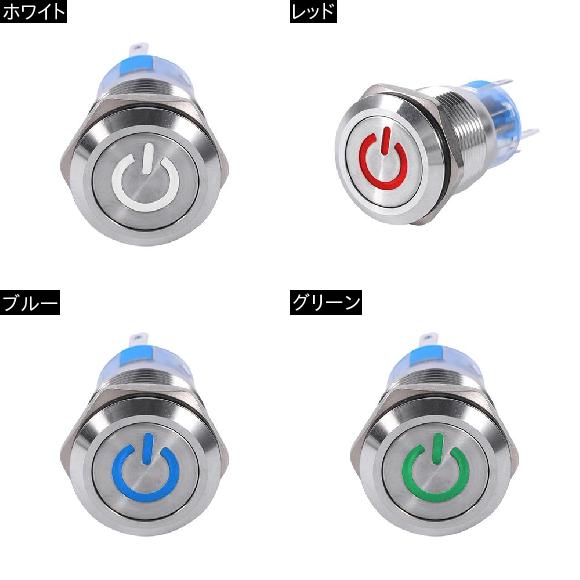 19mm 12V LED 防水ステンレス自己ラッチ電源スイッチ アクセサリー 選べる4カラー ホワイト〜グリーン AL-DD-1002 AL |