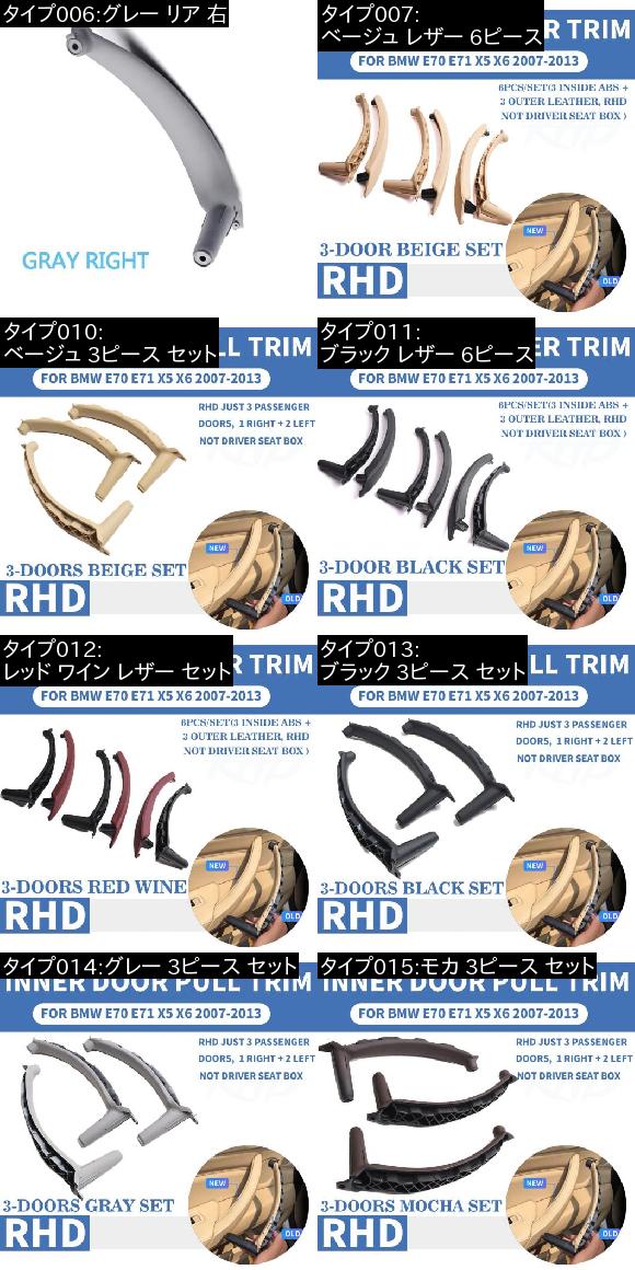 車部品 RHD 右ハンドル車 インナー ドア プル ハンドル トリム カバー 適用: BMW X5 X6 E70 E71 2007 フロント/リア 左 右 ABS ブラック ベージュ レザー 6ピース〜レッド ワイン レザー セット AL-EE-8675 AL |