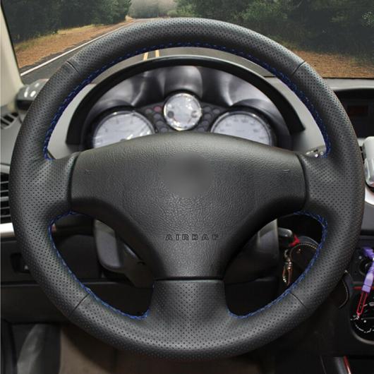 車用内装パーツ ステアリングホイールカバー 編み上げタイプ ブラック 人工レザー ラップ 適用: プジョー 206 2007-2009 プジョー 207 シトロエン C2 ブラック 糸〜グレー 糸 AL-FF-0652 AL |