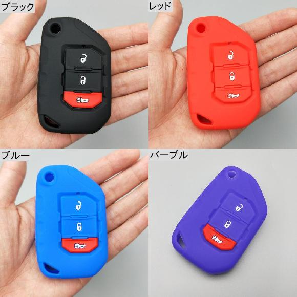 キーカバー シリコン ラバー キー フォブ ケース カバー スキン シェル ホルダー 適用: ジープ/JEEP ラングラー JL 2018 2019 3ボタン フリップ リモート 保護 シェル ブラック〜パープル AL-II-4865 AL