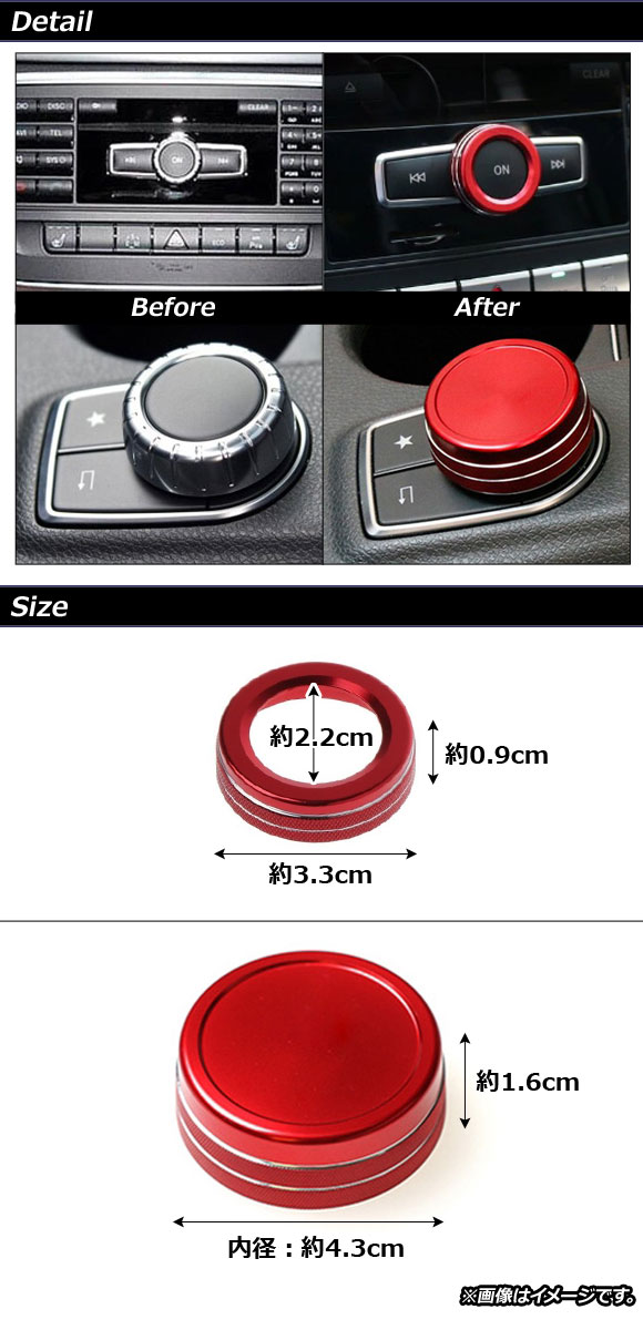 オーディオダイヤルリング&コントローラーカバー ブルー アルミ製 メルセデス・ベンツ 汎用 入数:1セット(2個) AP-IT981-AB-BL |