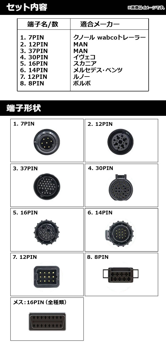 OBD2変換ハーネスセット トラック用 入数:1セット(8個) AP-EC566 |