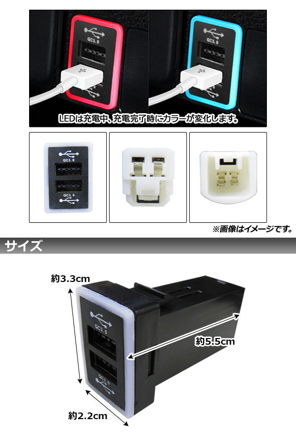 スイッチホールカバー QC3.0 USB2ポート トヨタ/スズキ/ダイハツ車汎用(Aタイプ) AP-EC664 |