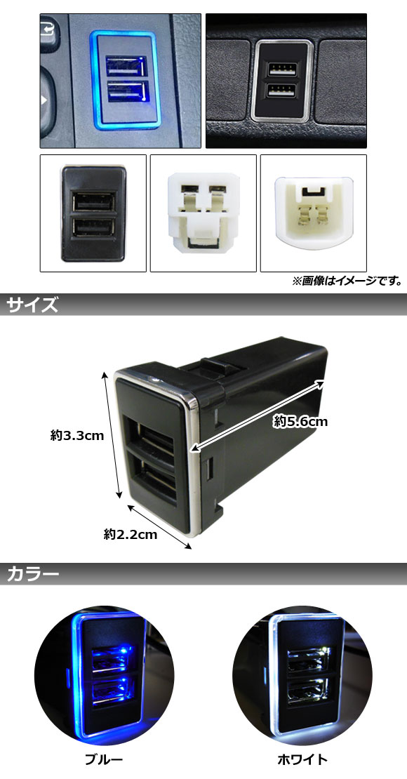 スイッチホールカバー ブルー QC3.0 USB2ポート トヨタ/スズキ/ダイハツ車汎用(Aタイプ) AP-EC670-BL |