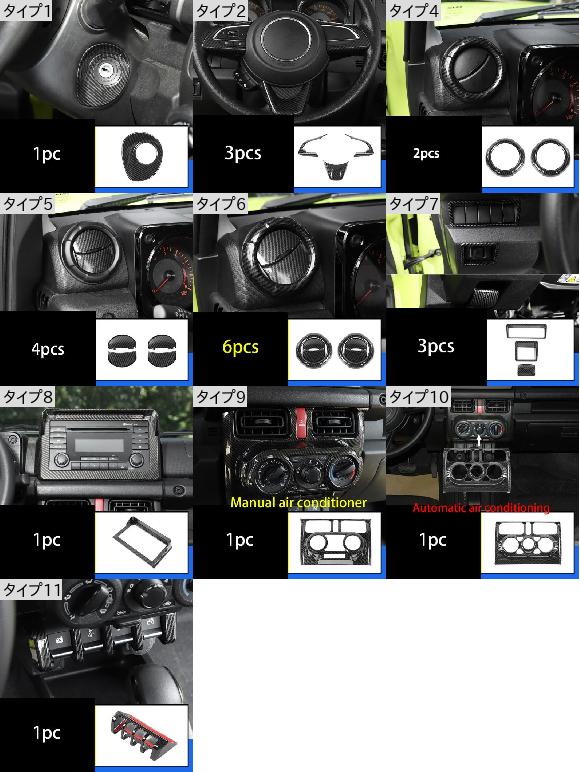 車部品 カーボンファイバー パターン 適用: スズキ ジムニー 2019-2020 JB64-JB74 インテリア セントラル コントロール 装飾 アクセサリー タイプ5 AL-PP-4901 AL |
