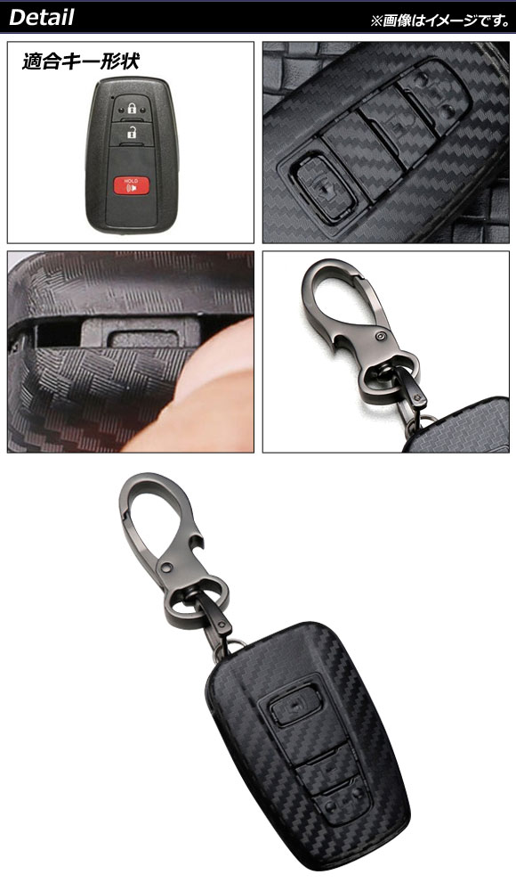 キーケース ブラックカーボン 3ボタン カーボンファイバー製 キーホルダー付き トヨタ 汎用 AP-AS689 |