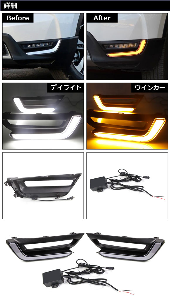 LEDデイライト ホンダ CR-V RW1/RW2 ハイブリッド不可 2018年08月〜2022年12月 ホワイト/アンバー 2色点灯 ウインカー連動 入数:1セット(左右) AP-LL538 |