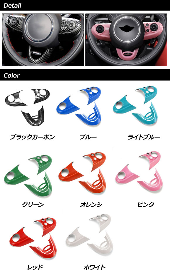 ステアリングカバー MINI(BMW) F54/F55/F56/F57/F60 2014年〜 レッド ABS製 入数:1セット(3個) AP-IT3137-RD |