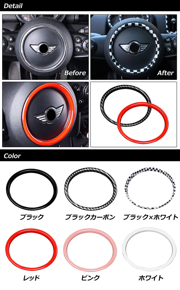 ステアリングエンブレムフレーム MINI(BMW) F54/F55/F56/F57/F60 2014年〜 ブラックカーボン ABS製 AP-IT3180-BKC |